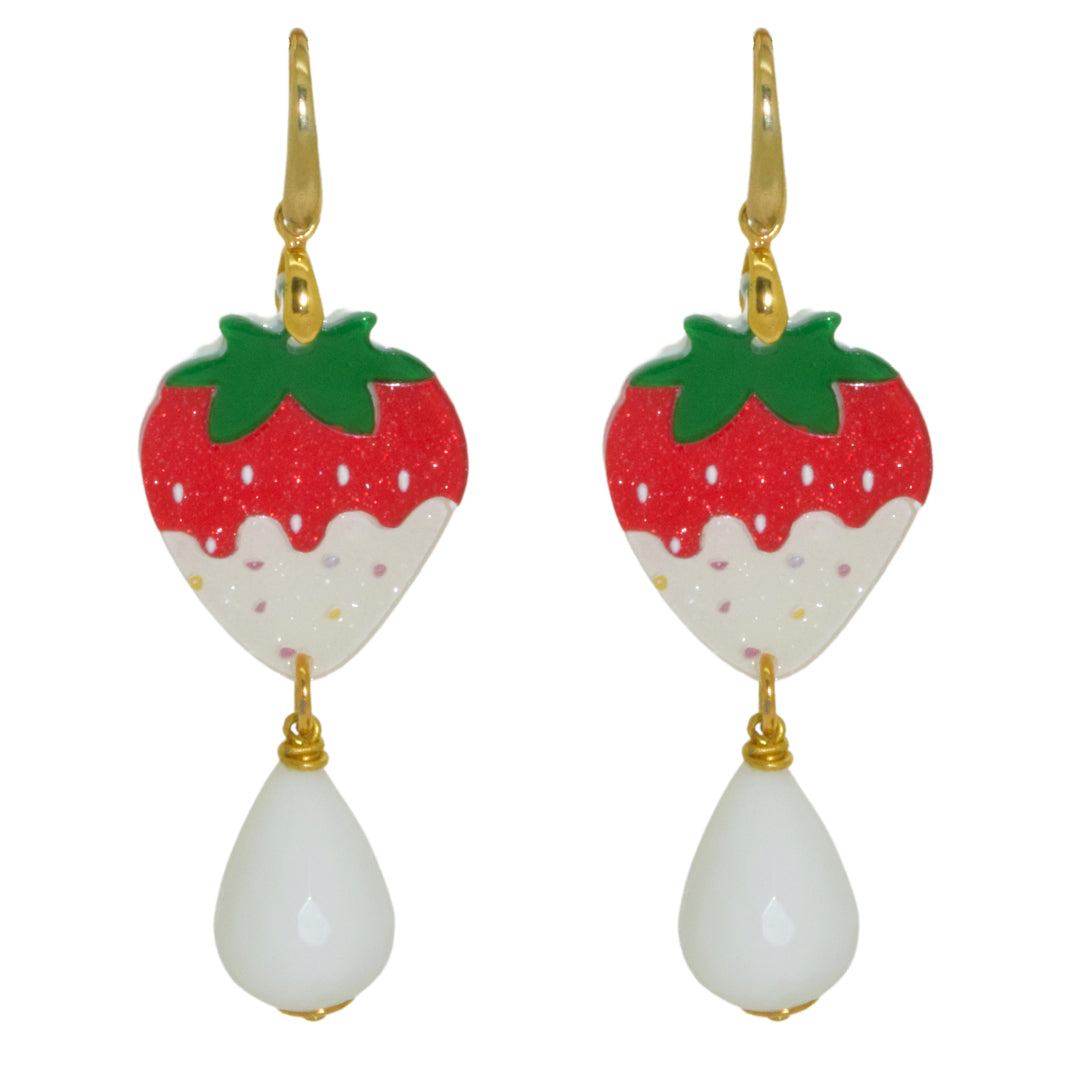 Süß und lustig! Diese Ohrringe mit Erdbeermarmelade sind ein wahrer Ohrenschmaus. Die kleinen Erdbeeren in Kombination mit der Perle sind dezent, aber auffällig und feminin.