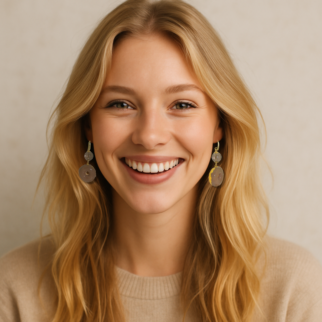 Indulge in a touch of playful luxury with Miccy’s Chocolate Donut Earrings. These irresistible statement pieces feature handcrafted donut-shaped pendants in a rich, glossy chocolate hue, paired with faceted crystal beads for a hint of sparkle. Finished with elegant 18K gold-plated hooks, they bring together fun and sophistication in the most delicious way. Perfect for those who love to stand out with a wink of whimsy and a dash of glamour.