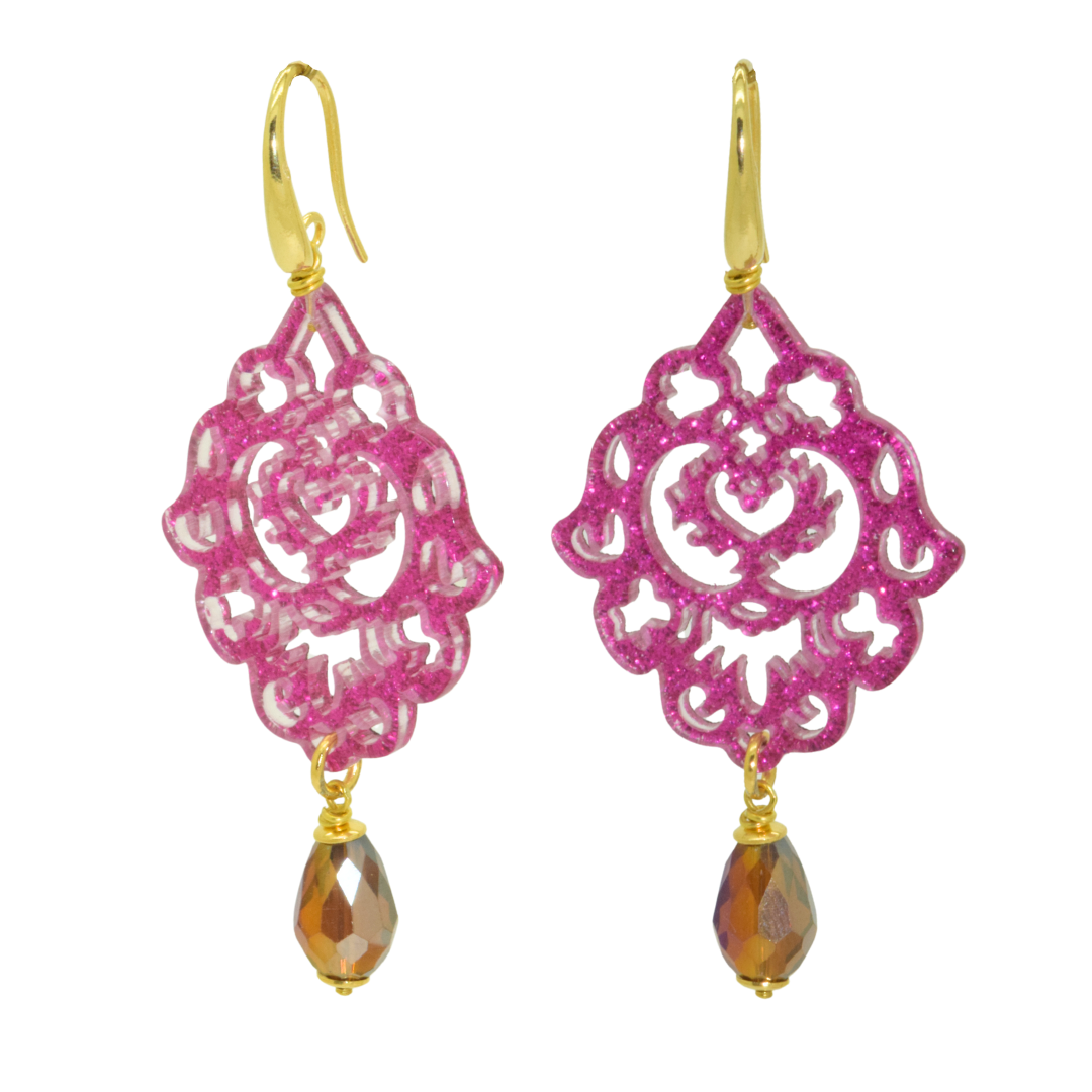 Fuchsia Glitter Ornaments | Petite | Resin Earrings