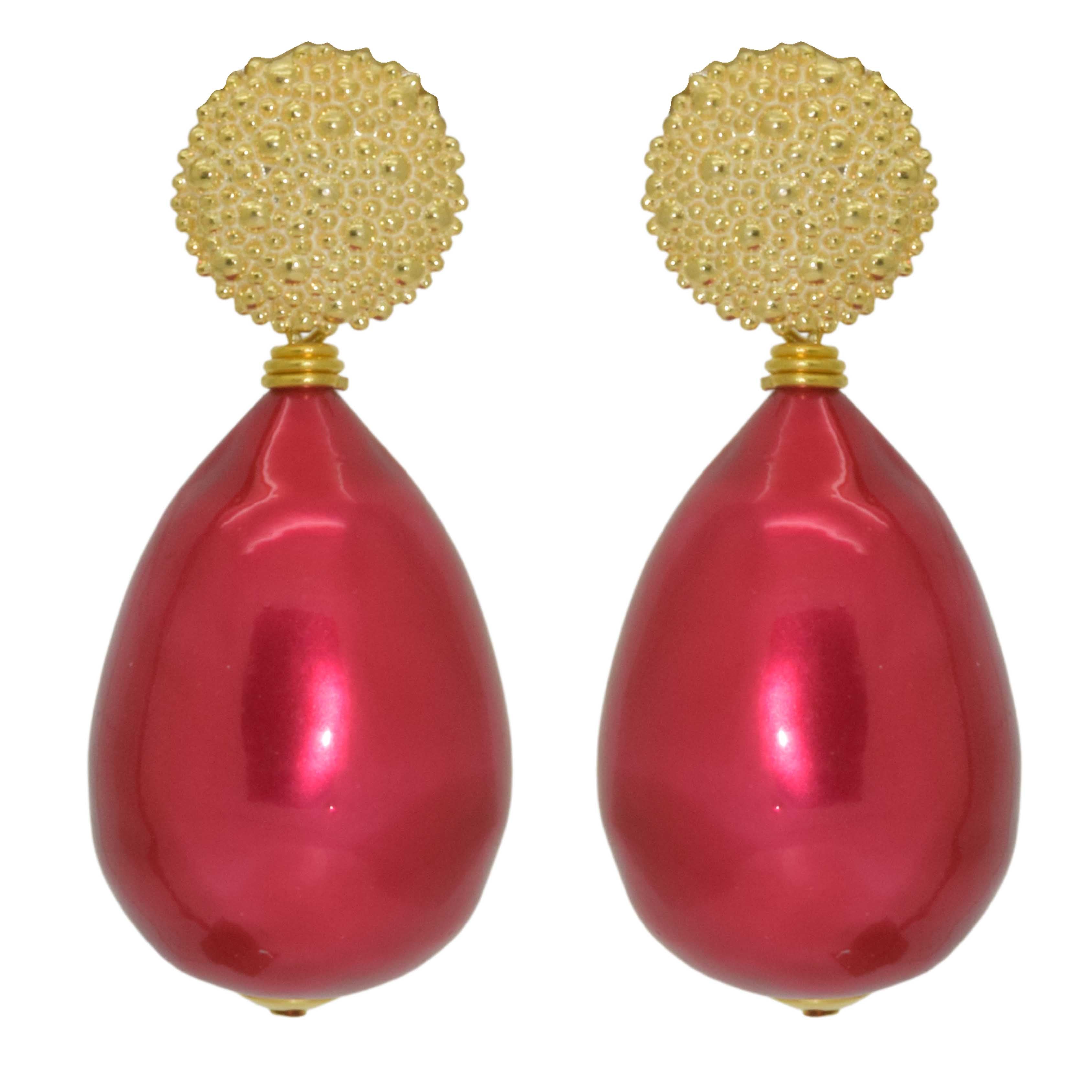 Petite Red Cotton Pearls | Resin Earrings