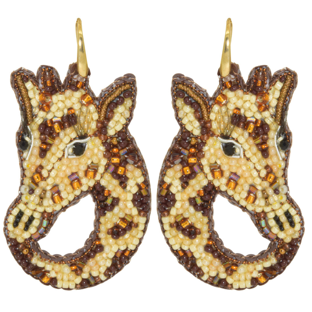 These Giraffe earrings are the result of eight hours craftsmanship by our atelier and made from the finest materials. The embroidery comes to life in these soft colours. Did you see the lovely lashes?