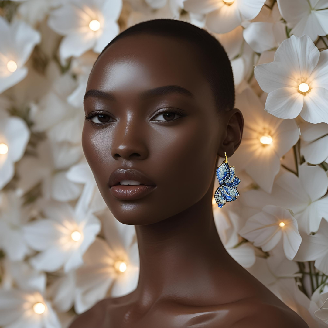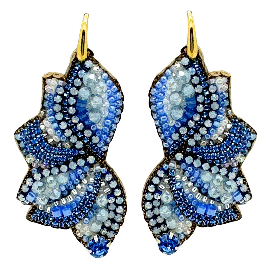 Beautiful Blue Lotus flower earrings. Handmade from ocean blue and white coloured crystals. A refined and stunning piece of art, these earrings.