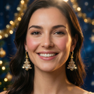 These earrings are pure holiday joy wrapped in a little piece of jewelry. The Christmas-tree shaped drops come in a warm champagne hue, fully covered in glitter that catches the light in the most magical way. Tiny iridescent sparkles add a touch of luxury and festive twinkle with every movement.