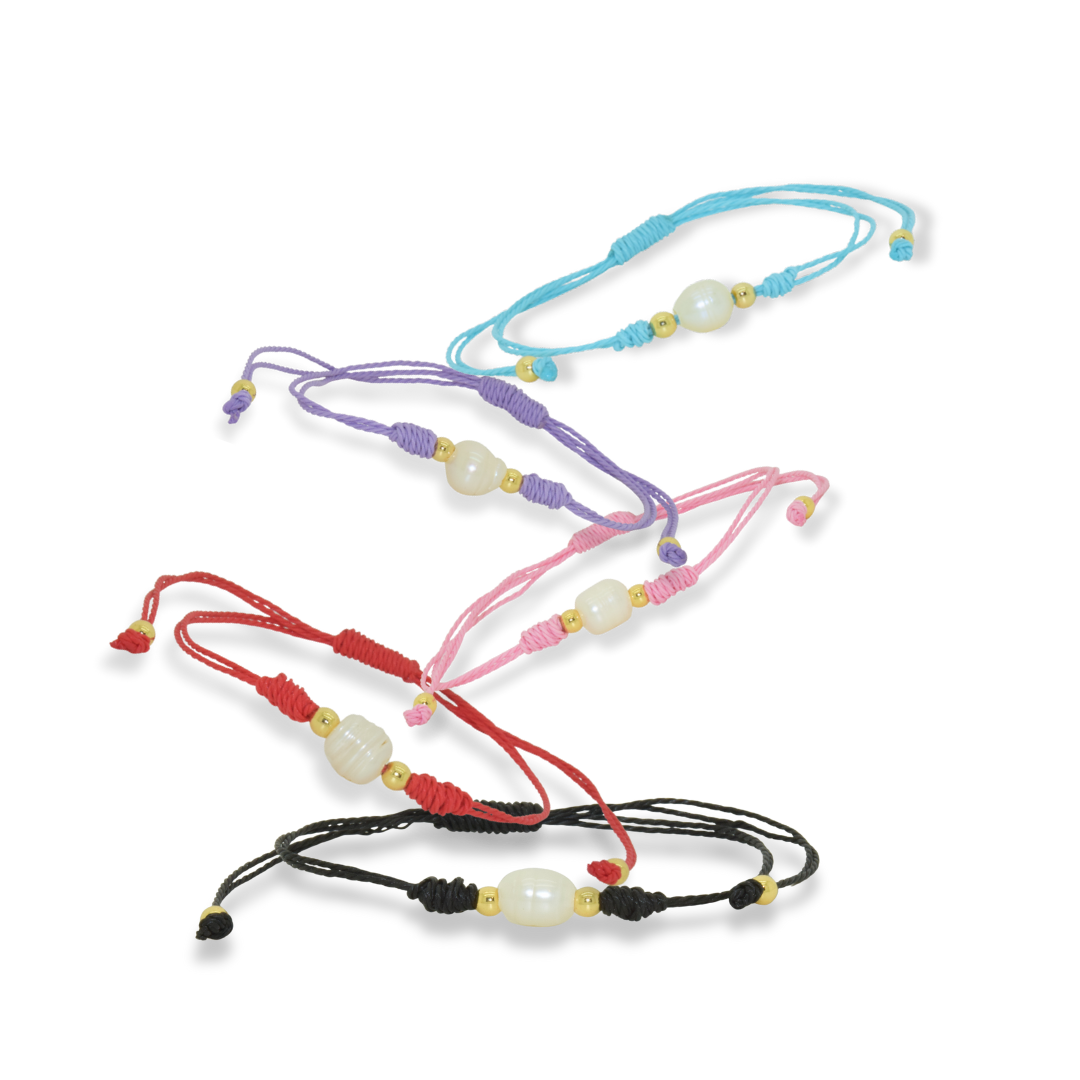 Each bracelet is hand-knotted in a fresh, uplifting color and features a genuine freshwater pearl that catches the light beautifully with every movement. The small gold-tone accents add a touch of luxury and warmth. Wear it solo for a minimal look, or mix & match multiple colors for a playful, summery stack.