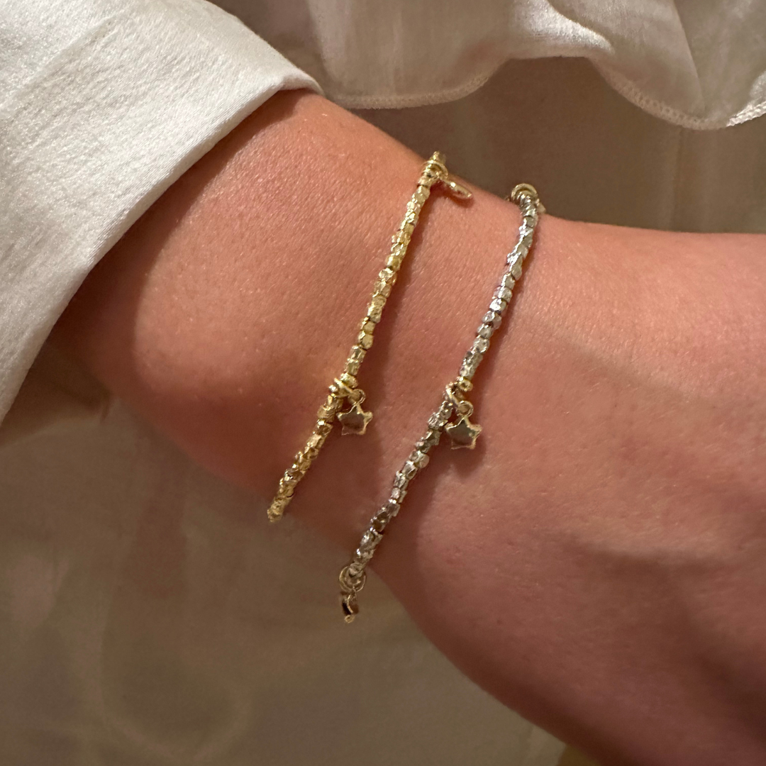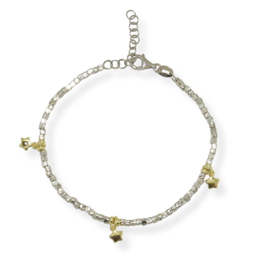 This 925 silver with gold plated stars bracelet takes your outfit to a higher level and makes you shine on every occasion. The bracelet adds a subtle yet striking accent to your look. Mix and match this bracelet with other Miccy's bracelets for the ultimate statement look.