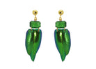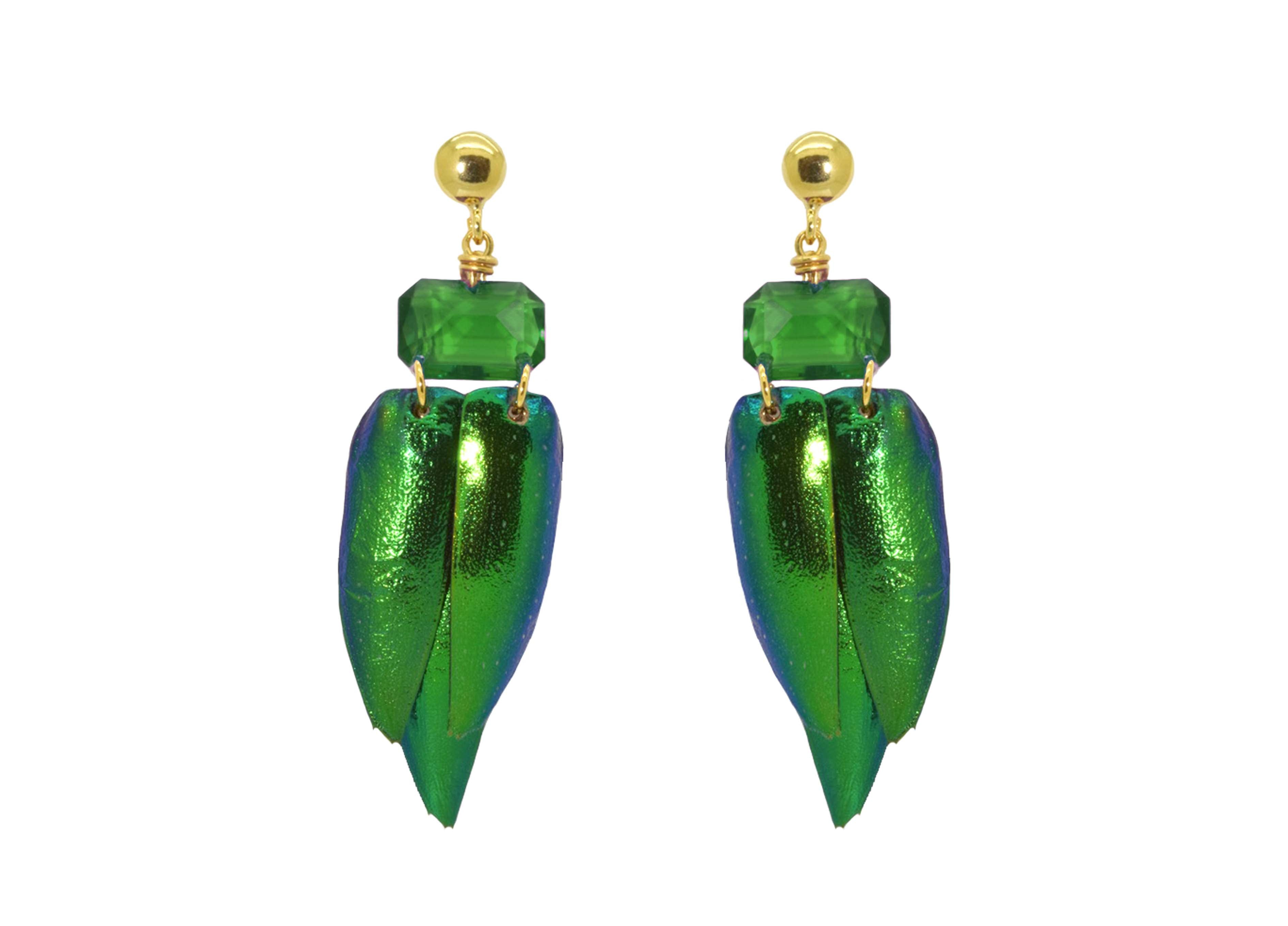 Diese Ohrringe bestehen aus echten Käferflügeln des Juwelenkäfers.